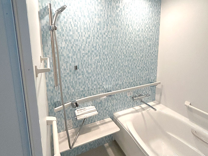 サポートバー設置と段差解消で、安心して入浴できるバスルーム