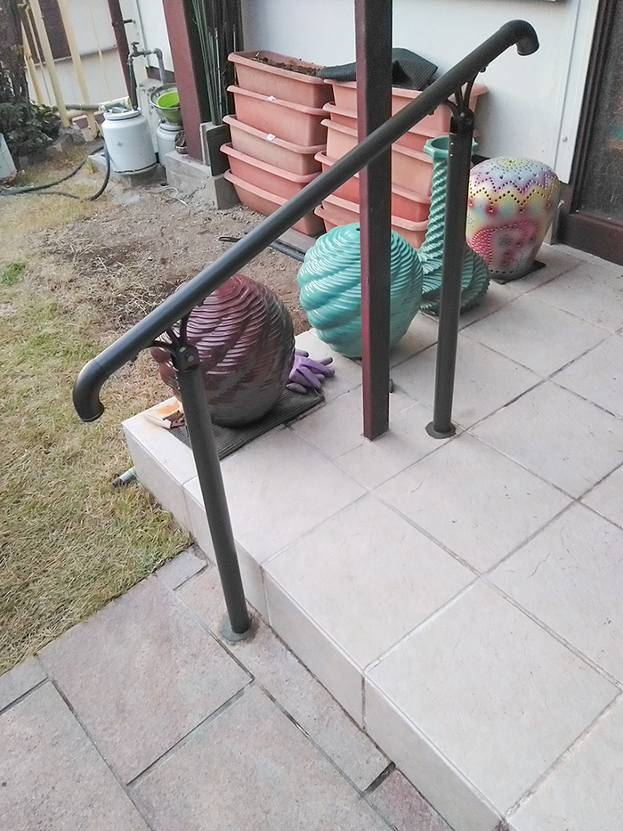 今までは自分も主人も階段の昇り降りが大変でしたが、手すりが出来たことで玄関の行き来がしやすくなりました。主人も喜びます。ありがとうございました。