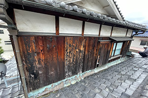 ・焼き板が劣化し、剥がれてきている。台風で少し落ちてきた為、張替をしたい。