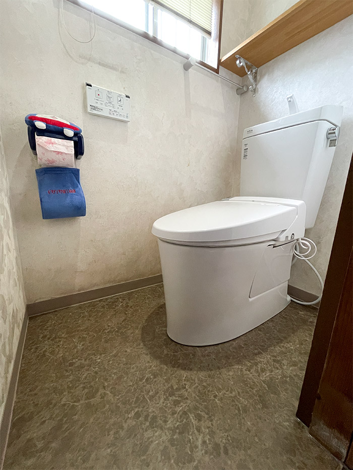 トイレ:LIXIL アメージュZ便器(便座:シャワートイレ KAシリーズ KA21QC) クッションフロア:サンゲツ Hフロアコンパクト(品番:HM-15098) |